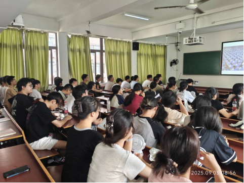 上午9时,阅兵仪式准时开始。师生们瞬间挺直身姿,神情庄重,目光紧紧锁定屏幕。不少同学还轻声跟唱国歌,以真挚的情感表达对祖国的热爱。当聆听习近平总书记在纪念中国人民抗日战争暨世界反法西斯战争胜利80周年大会上的重要讲话时,现场氛围更显肃穆。大家认真领会讲话精神,深刻感悟历史赋予的责任与使命,强烈的民族自豪感在每个人心中油然而生。
