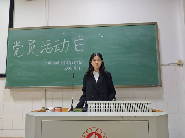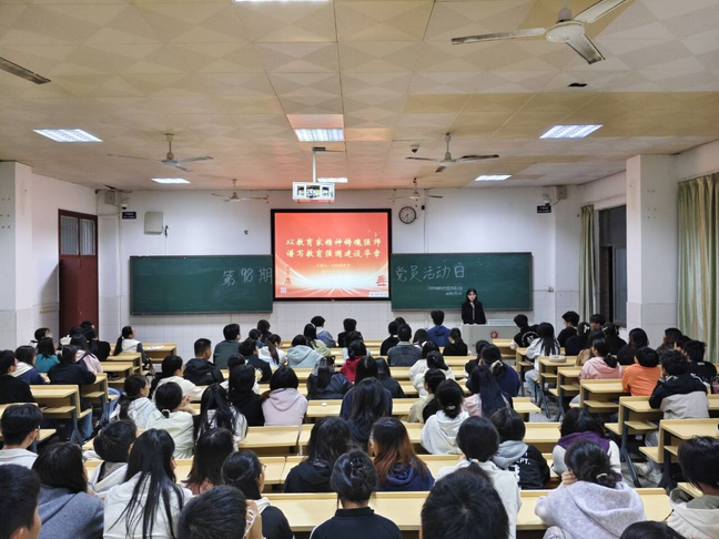 2025年11月2日晚,2138CC太阳集团学生党支部第九十八期“党员学习日”活动于行知楼601开展,2303班张莹同学以《以教育家精神铸魂强师 谱写教育强国建设华章》为题与全体学生党员和学习积极分子分享了她的学习心得。